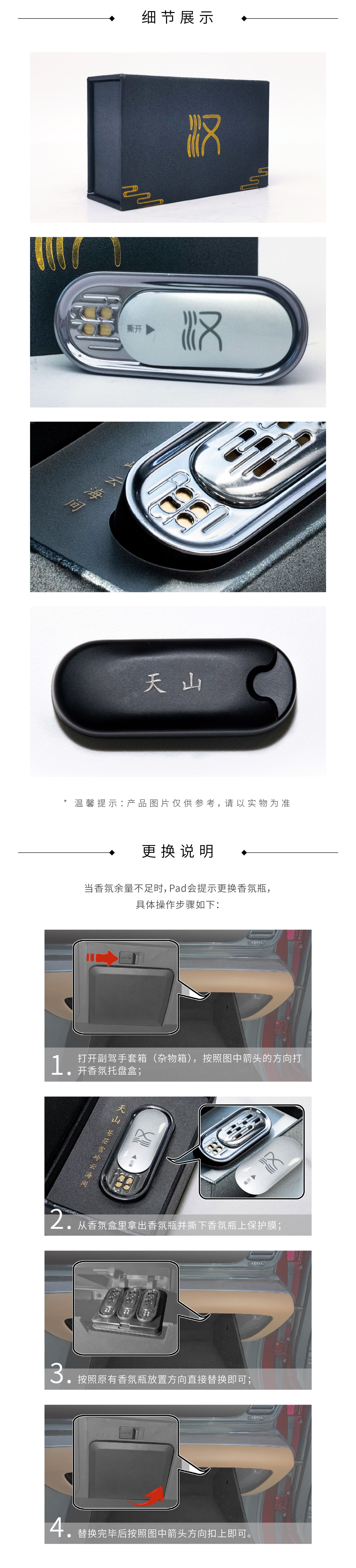 | 用途: | 用于原车香氛瓶替换,提高驾驶乐趣,保持车内空气洁净,杀灭细菌,净化空气。 | |